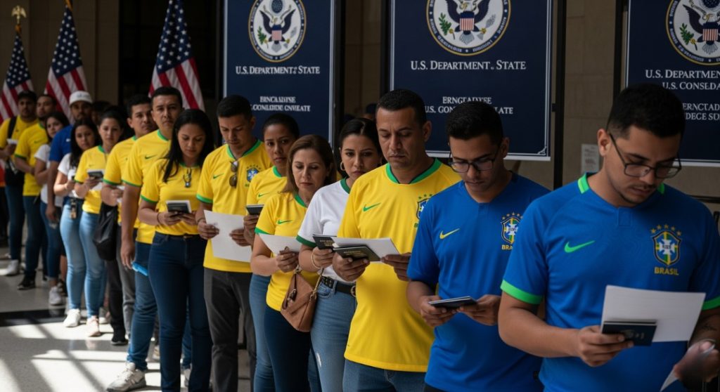 Com a aproximação da Copa do Mundo de 2026, que será realizada em diversos estados dos EUA, a Embaixada e Consulados dos Estados Unidos no Brasil reforçam: solicite seu visto o quanto antes! O fluxo intenso de torcedores exige planejamento — e agora, há uma novidade importante que também preocupa imigrantes e viajantes, a nova taxa adicional: “Visa Integrity Fee”.