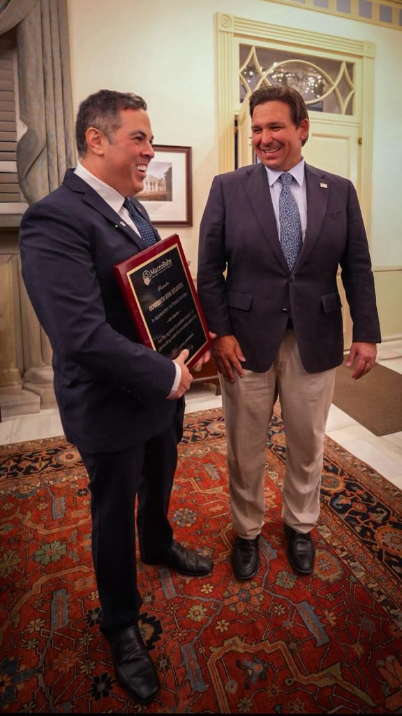 Como forma de reconhecimento, o empresário presenteou o governador com uma placa histórica da MacroBaby. No encontro, DeSantis destacou a importância da empresa para a economia local, reconhecendo a MacroBaby como a maior loja de produtos para bebês dos Estados Unidos e um destino procurado por famílias de diversas partes do mundo. O governador também ressaltou o orgulho de a empresa ter nascido na Flórida há mais de duas décadas, tornando-se referência em geração de empregos e crescimento sustentável, além de comentar, em tom descontraído, que muitos tentam copiar o modelo da empresa, mas não conseguem replicar seu sucesso.