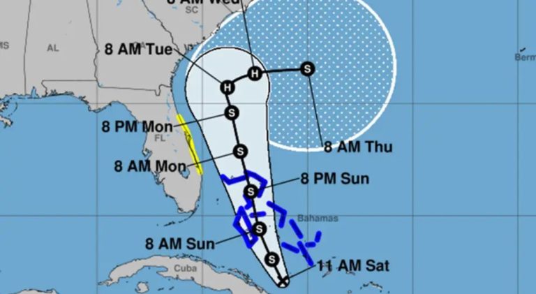 O Centro Nacional de Furacões (NHC) dos Estados Unidos emitiu um alerta de tempestade tropical para a costa leste da