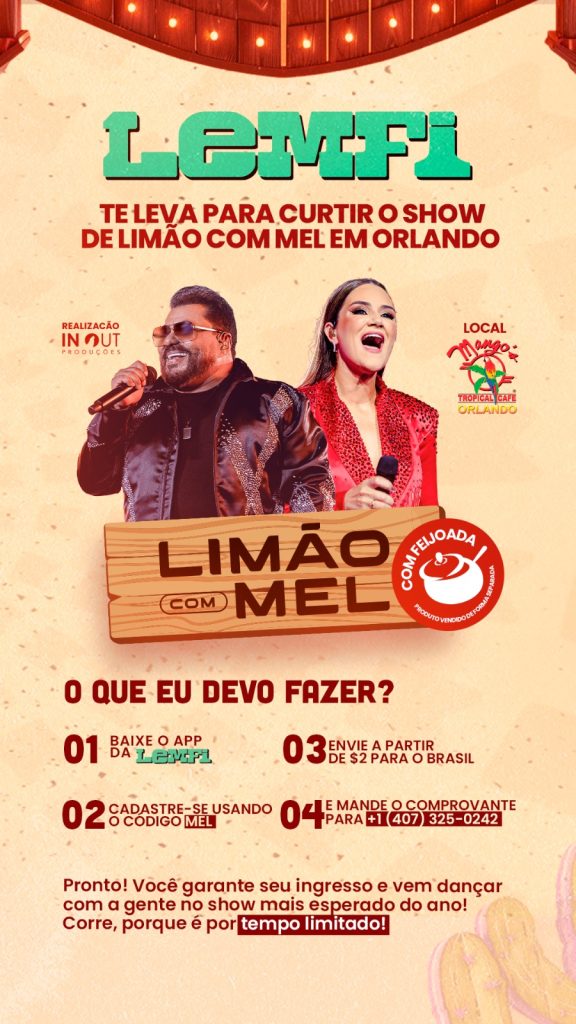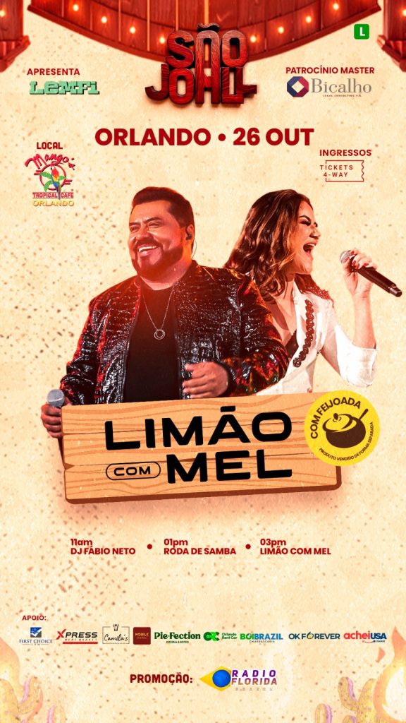 Limão com Mel, a banda mais romântica do forró brasileiro, fará seu show em Orlando no próximo domingo, dia 26 de outubro. O grupo, formado por Edson Lima e Adma Andrade, celebra três décadas de trajetória e promete levar aos palcos americanos os grandes sucessos que marcaram gerações.