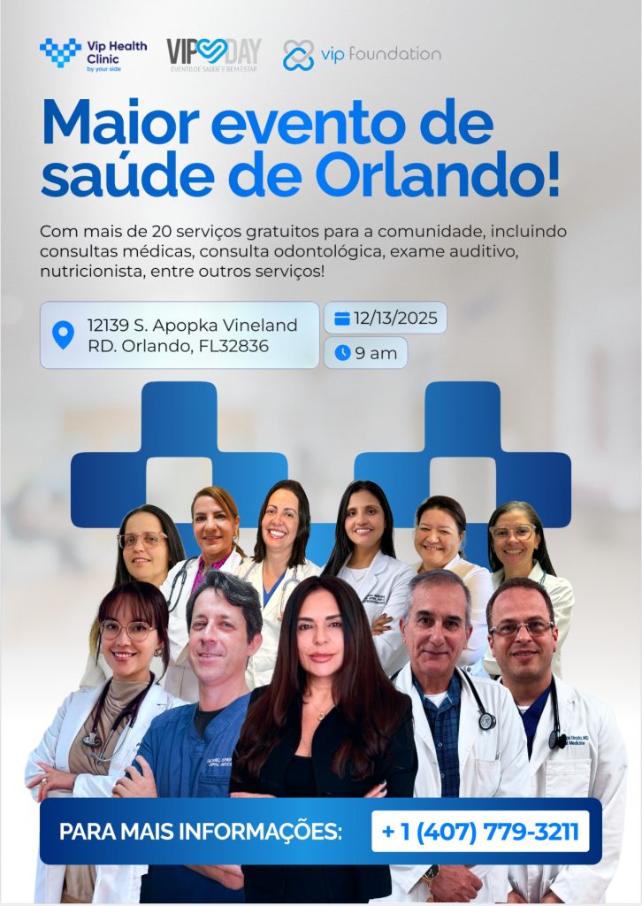 Orlando se prepara para receber o maior evento gratuito de saúde do ano. No dia 13 de dezembro, a partir das 9h da manhã, a Vip Health Clinic realizará o Vip Day 2025, uma ação social que disponibilizará mais de 20 serviços essenciais totalmente gratuitos para a população.